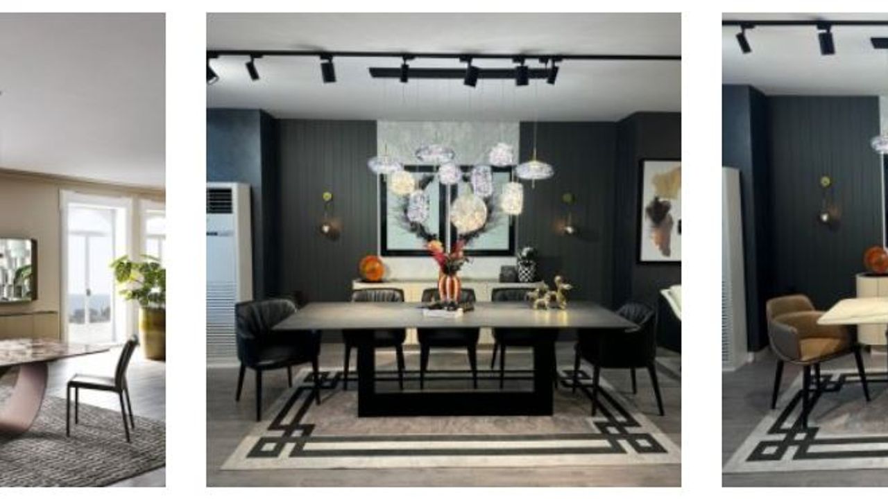 - Farklı ölçülerde ve renk tonlarında yemek masaları