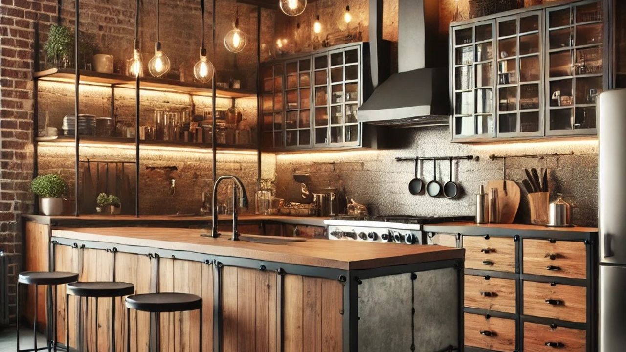 Son yıllarda popüler hale gelen endüstriyel tarz mutfaklar, metal detaylar, açık raf sistemleri ve ham ahşap yüzeyleri ile dikkat çeker. Siyah, gri ve koyu kahve tonları bu tarzın temel renkleridir. Loft tarzı evler için son derece uygun olan bu mutfak dolapları, özgün ve modern bir atmosfer yaratır.