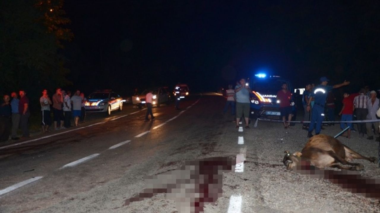 Kaza, Çaybaşı yolu üzeri Aydıntepe Mahallesi’nde meydana geldi. Edinilen bilgiye göre, saat 20.00 sıralarında Ünye’den Çaybaşı istikametine gitmekte olan Murat Karaman idaresindeki 61 AR 691 plakalı araç, Aydıntepe sapağında karşıdan karşıya geçmekte olan Hamide Kılıçarslan’a ait ineğe çarptı. Çarpmanın etkisiyle aynı yönde seyir halinde gitmekte olan Serkan Gümüş idaresindeki 51 EZ 151 plakalı araç da öndeki araca çarptı. Her iki araç yolun sağında bulunan şarampole yuvarlandı. Kazada şoförlerle birlikte araçta bulunan Feride Karaman da yaralanırken, yaralılar Ünye’de özel bir hastaneye kaldırılarak tedavi altına alındı. Aracın çarptığı inek olay yerinde telef oldu. Ünye-Çaybaşı yolu kısa süreli trafiğe kapatıldı. Kazaya karışan araçların olay yerinden çekici yardımıyla kaldırılmasıyla trafik normale döndü.