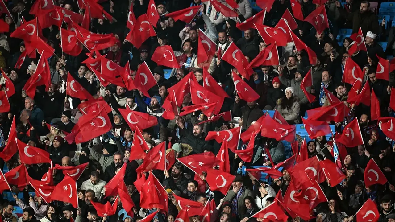 Ay-yıldızlı bayraklarla kaplanan tribünler, stadyumda hem duygusal hem de etkileyici bir atmosferin oluşmasını sağladı. Taraftarların sergilediği birlik ve beraberlik görüntüsü, maç öncesinde futbolseverlerden büyük alkış aldı.