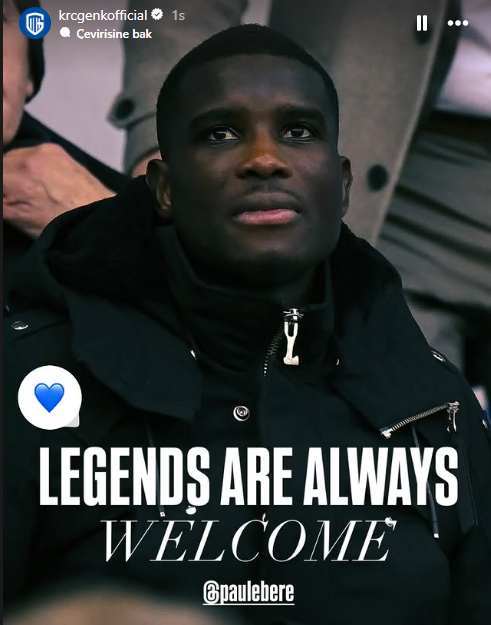 Genk Kulübü, Paul Onuachu'nun tribünde yer aldığı fotoğraf karesini paylaşarak "Her zaman efsane, hoşgeldin" ifadelerine yer verdi.