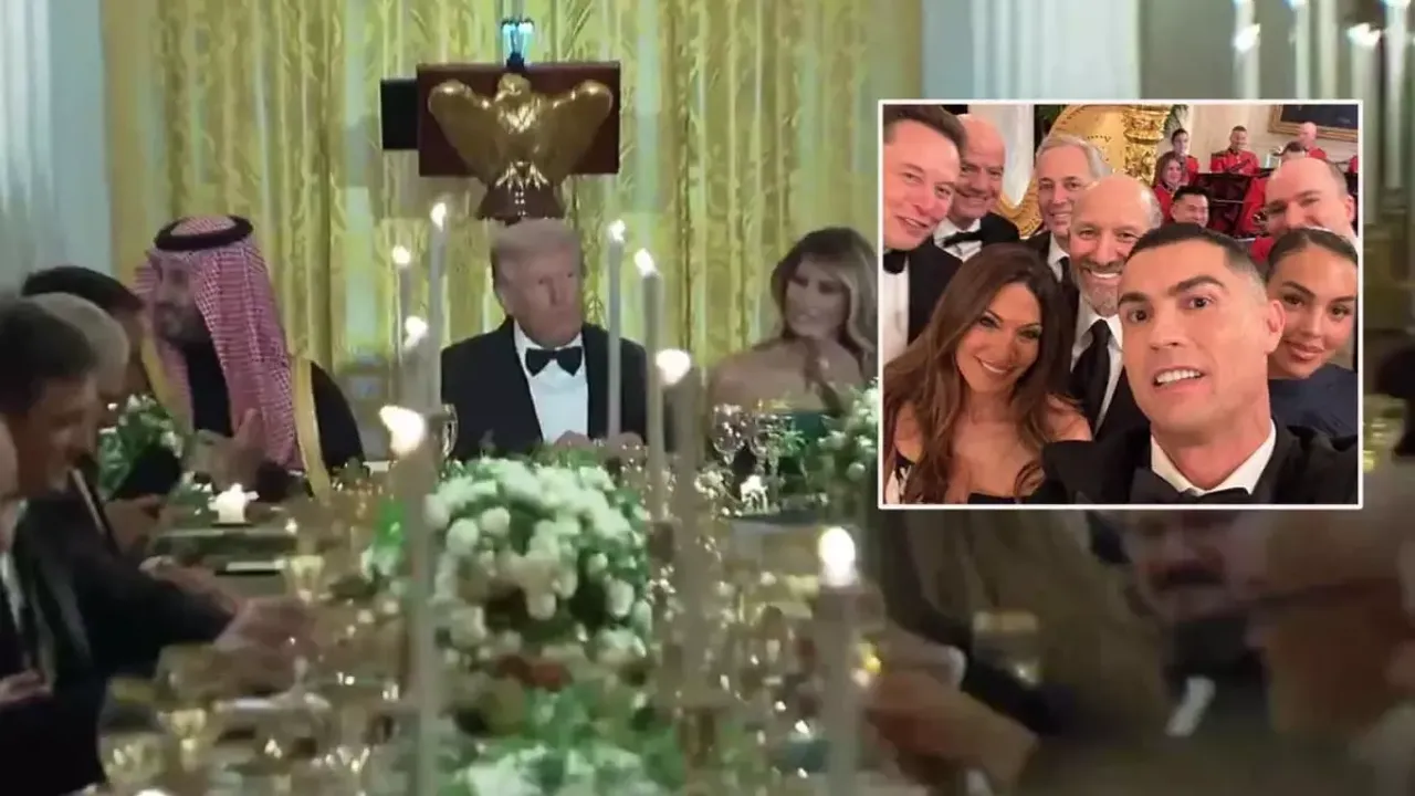 Cristiano Ronaldo, Suudi Arabistan Veliaht Prensi Muhammed bin Selman onuruna ABD Başkanı Donald Trump tarafından Beyaz Saray’da düzenlenen üst düzey devlet yemeğine katılarak gecenin en dikkat çeken konuklarından biri oldu. Dünyanın en zengin, en etkili ve en tanınmış isimlerinin buluştuğu davette Ronaldo’nun çektiği selfie sosyal medyada gündem olurken, nişanlısı Georgina Rodriguez’in iddialı kıyafeti de büyük ilgi topladı.