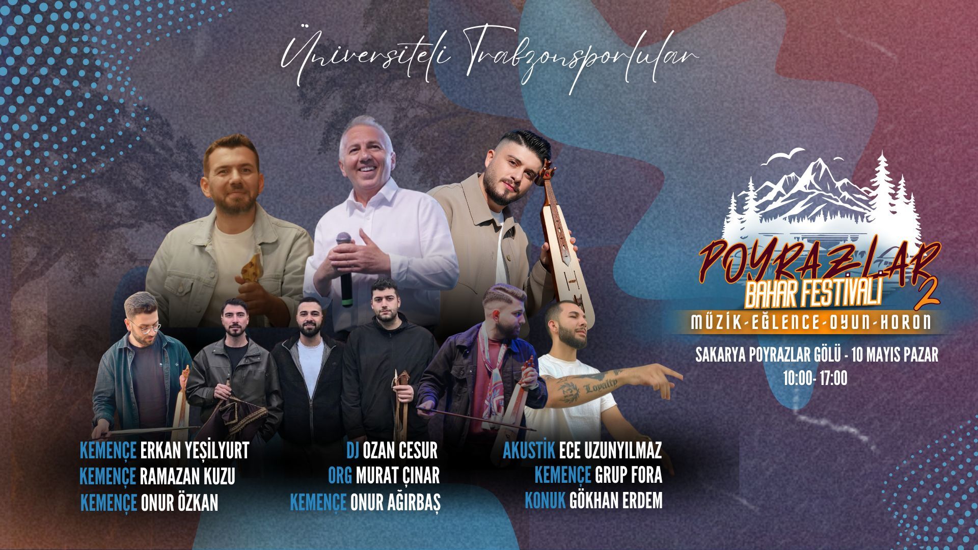 "Karadeniz’in coşkusunu, kültürünü ve ruhunu doyasıya yaşamak için hazır mısınız? Üniversiteli Trabzonsporlular olarak, doğayla iç içe harika bir festival düzenliyoruz! Poyrazlar Tabiat Parkı’nda gerçekleşecek bu etkinlikte horondan kemençeye, DJ performanslarından eğlenceli oyunlara, yöresel lezzetlerden sürpriz konuklara kadar her şey bulunacak! Sen de bu coşkunun bir parçası olmak istiyorsan, yerini şimdiden ayırt!"