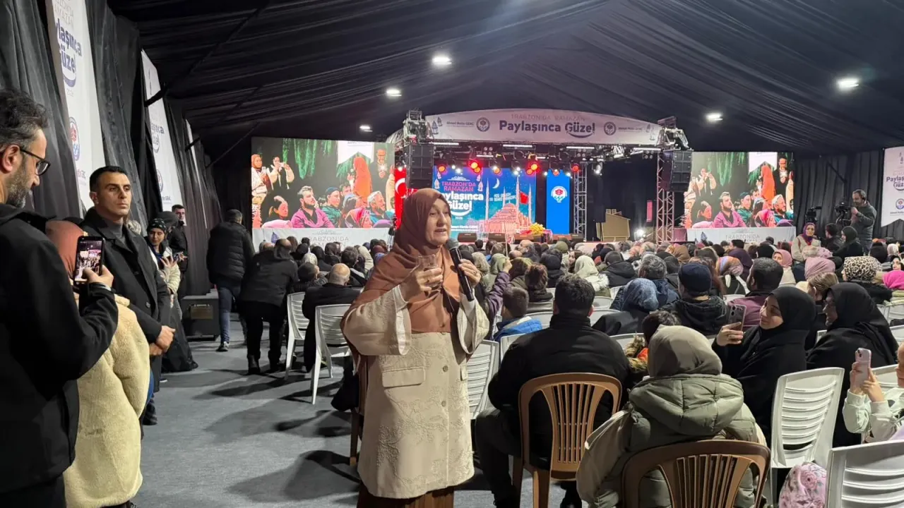 Saliha Erdim, Trabzon Büyükşehir Belediyesi tarafından düzenlenen Ramazan Sohbetleri programında vatandaşlarla bir araya geldi. “Ailede Rol Dağılımı” konulu söyleşiye yoğun katılım olurken, Hanife Hatun Camii yanındaki etkinlik çadırı tamamen doldu. Program boyunca hem aile yapısına dair mesajlar hem de Trabzonspor vurgusu dikkat çekti. Saliha Erdim Trabzonspor sözleriyle salonda büyük alkış aldı.