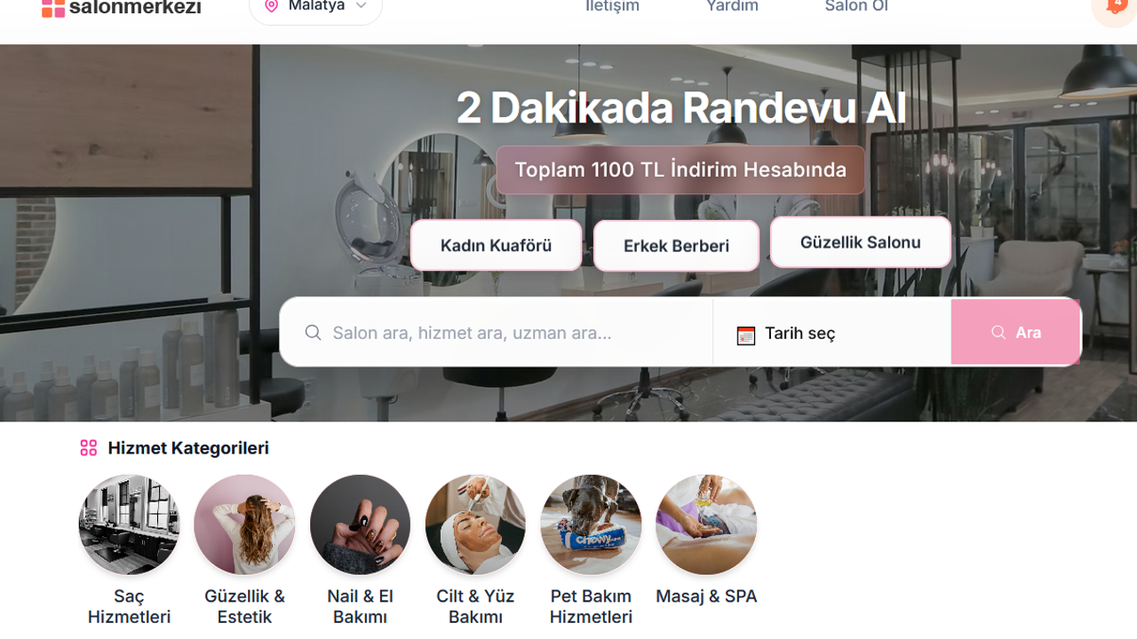 İşte Salon Merkezi, size bu potansiyeli gerçeğe dönüştürme fırsatı sunuyor. Profesyonel bir güzellik salonu randevu sistemi ile işinizi dijitalleştirin, pazar yeri gücüyle yeni müşteriler kazanın ve "Sen Özelsin Hisset" sloganıyla müşterilerinizin kalbinde taht kurun.
