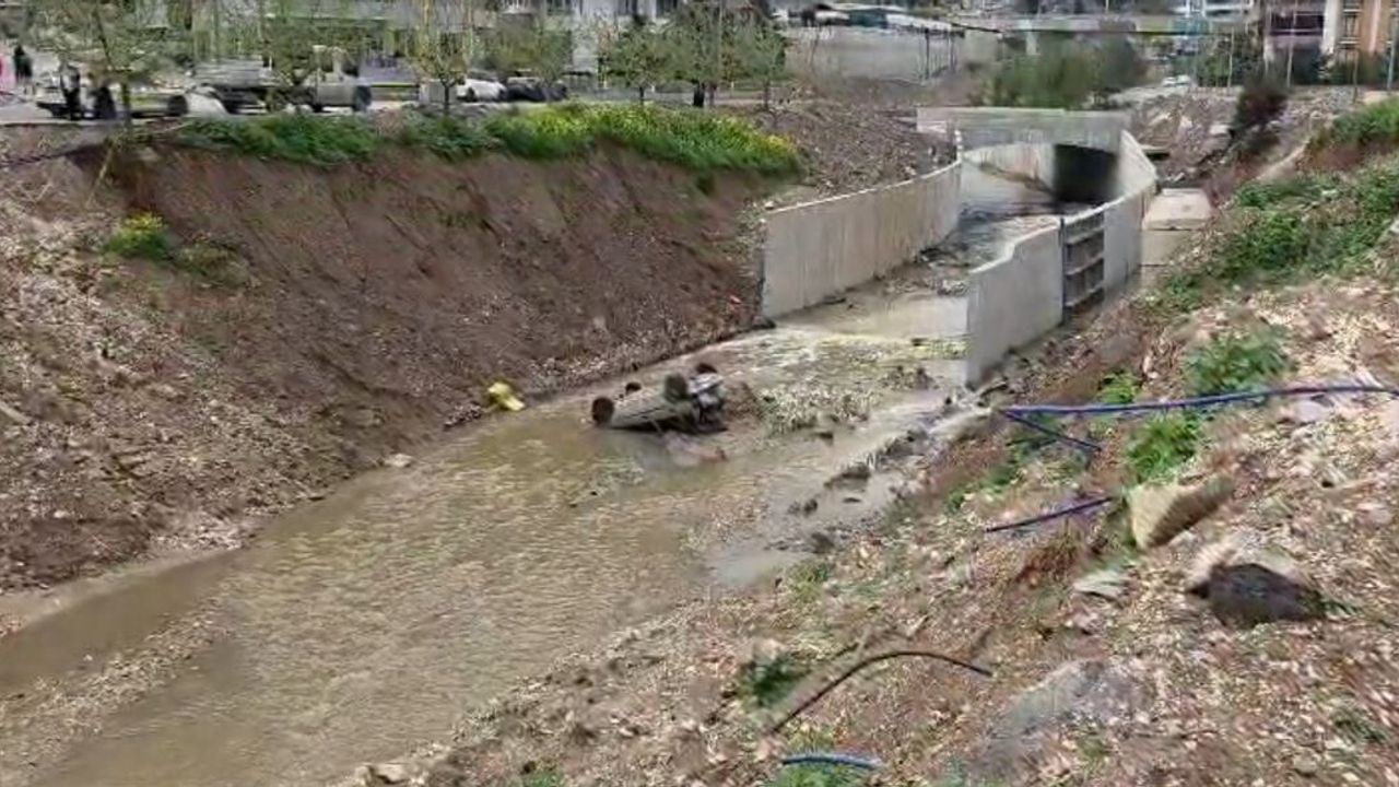 Yaşanan olay, çevrede bulunan güvenlik kameraları tarafından kaydedildi. Görüntülerde aracın yavaş şekilde hareket ederek dereye düştüğü anlar yer aldı.
