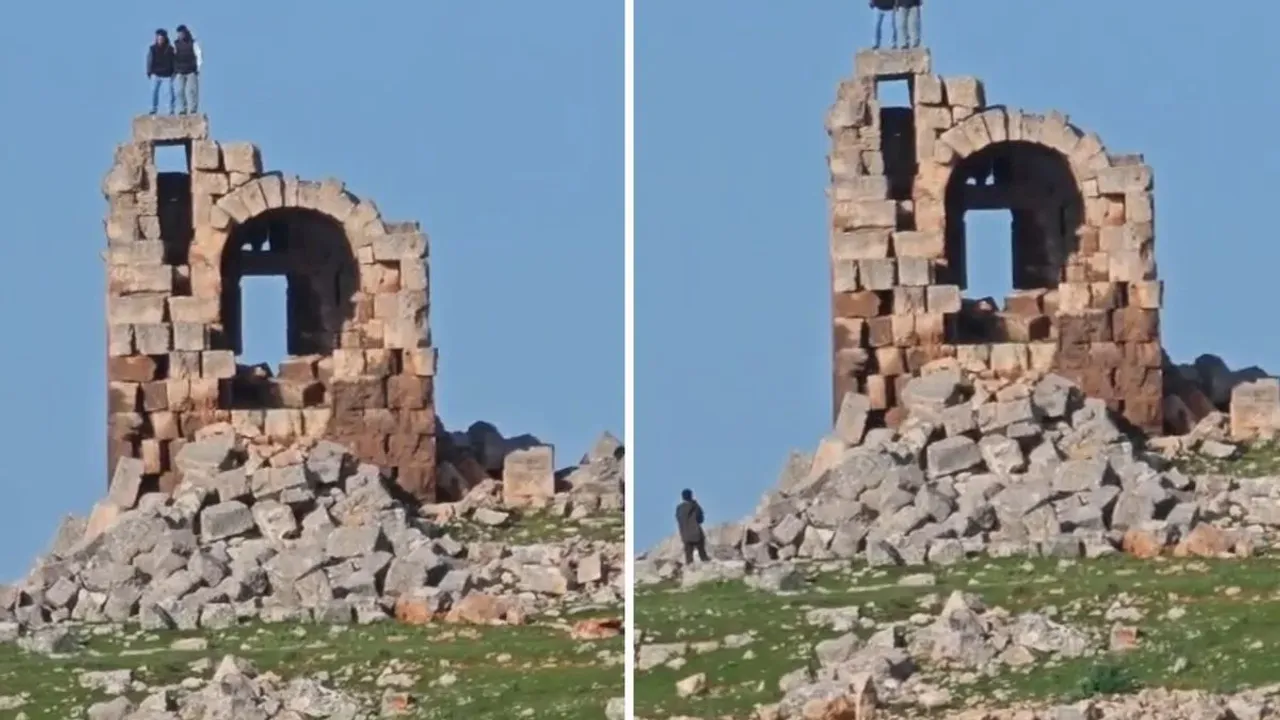Halk arasında Nemrut’un Tahtı olarak bilinen Yakup Manastırı üzerinde gerçekleştirilen bu davranış, tarihi mirasın korunması açısından endişe yarattı. Görüntülerde iki kişinin halay çektiği, bir başka kişinin ise bu anları kayda aldığı dikkat çekti.