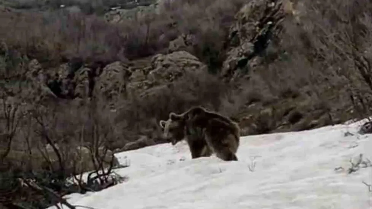 İlçe merkezine yaklaşık 28 kilometre uzaklıkta bulunan Alan Köyü kırsalında görülen ayının, uzun süren kış şartları nedeniyle yiyecek bulmakta zorlandığı değerlendiriliyor.
