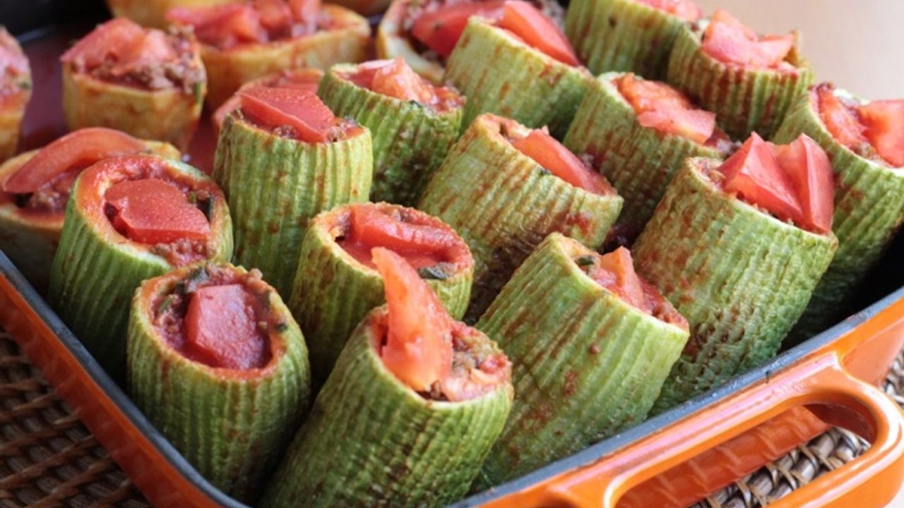 Öncelikle elimiz'de olan kabakları bir güzel yıkayalım. Daha sonra çatalla üstlerini çizelim.Kabakların boyuna göre üç parçaya bölebilirsiniz.Kabakların içlerini kaşık yardımıyla çıkartalım.Bu işlemi yaptıkdan sonra bir tavaya sıvı yağ döküp kızartmaya başlıyalım. Kızarma işlemi devam ederken soğanları küp bir şekilde doğruyalım.Çeyrek sıvı yağ ile bir köşede soğanları kızartalım.Hazırlamış olduğumuz malzemelerin içersinie kıymayı koyalım ve harmanlayalım.Karabiber ve tuz kıyamanın içerisine dökelim.Bu işlemden sonra nohutlarımızı'da ilave edelim.Daha sonra ocağın altını kapatalım.Bekleyen yemeğin içersinie maydanozumuzu ilave edelim.Yapılan harç soğuduktan sonra kabaklarımızın içerisine dökelim ve dizmeye başlıyalım.Sosumuz için bir çay bardağı suyla salçayı karıştıralım. Elde edilen sosu tepsimizin kenarlarına dökelim. Bu işlem bittikden sonra 200 dereceli bir fırında 30 dakika bekletelim ve yemeğe hazır hale getirelim.