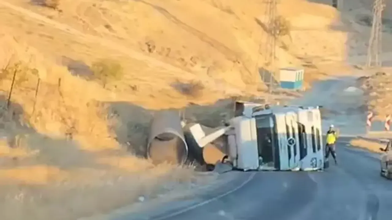 Kaza, dün öğle saatlerinde meydana geldi. 81 ES 865 plakalı TIR, sürücüsünün kontrolü kaybetmesi sonucu devrildi.