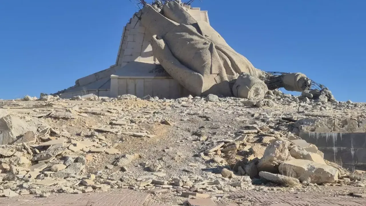 Başkent Şam’ın yaklaşık 88 kilometre kuzeyinde yer alan Deir Atiyah kasabasındaki heykel, bir dönem Suriye’nin en büyük Hafız Esad anıtı olarak biliniyordu. Bugün ise parçalanmış haliyle rejimin çöküşünü ve halkın zaferini simgeliyor.