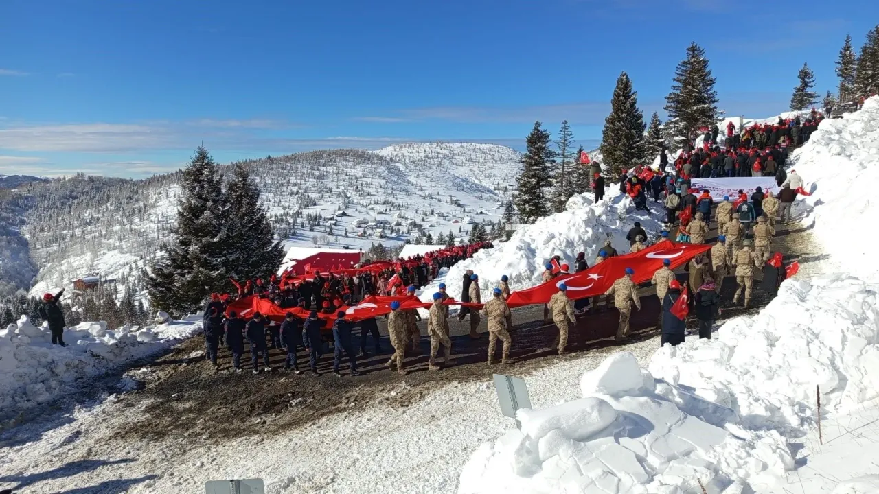 Trabzon’un Şalpazarı ilçesinde düzenlenen anlamlı yürüyüş, milli birlik ve beraberlik mesajlarıyla dikkat çekti. “Biz hep aynı yerdeyiz” sloganıyla Hanyanı mevkisinde başlayan yürüyüş, 2 bin 200 rakımlı Sis Dağı’nda sona erdi. Doğa ile iç içe gerçekleştirilen etkinlikte, katılımcılar 350 metrelik Türk bayrağı ve Atatürk posteri taşıyarak güçlü bir görsel oluşturdu.