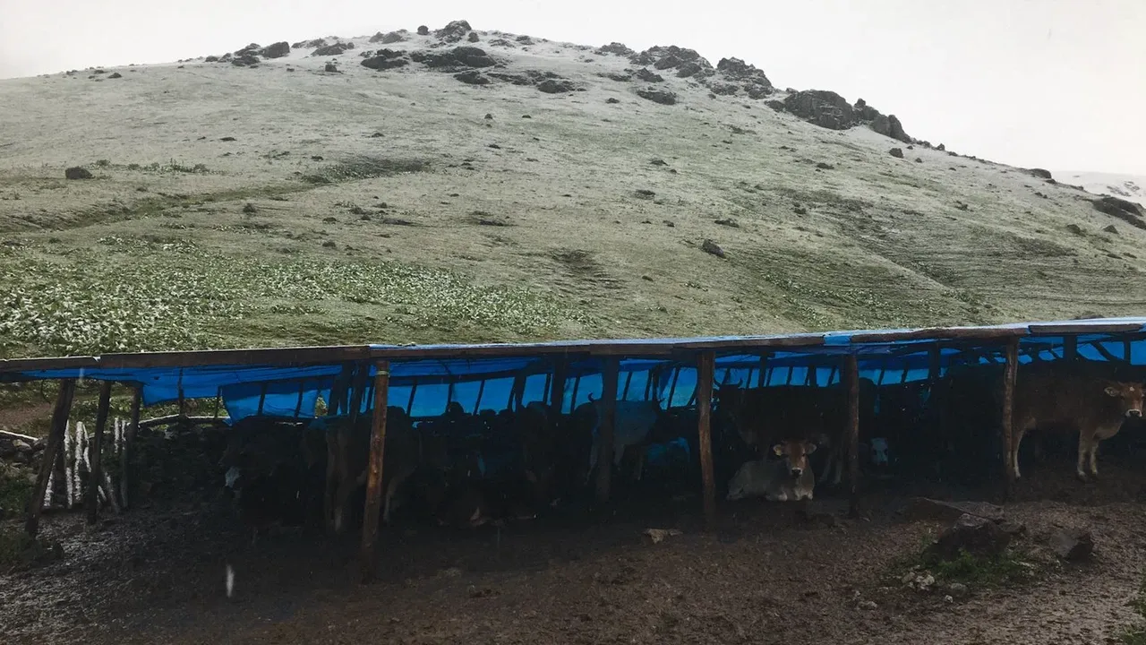 Yaz mevsiminin ortasında gelen kar yağışı, yaylalarda doğa manzaralarına kış görünümü kazandırdı.