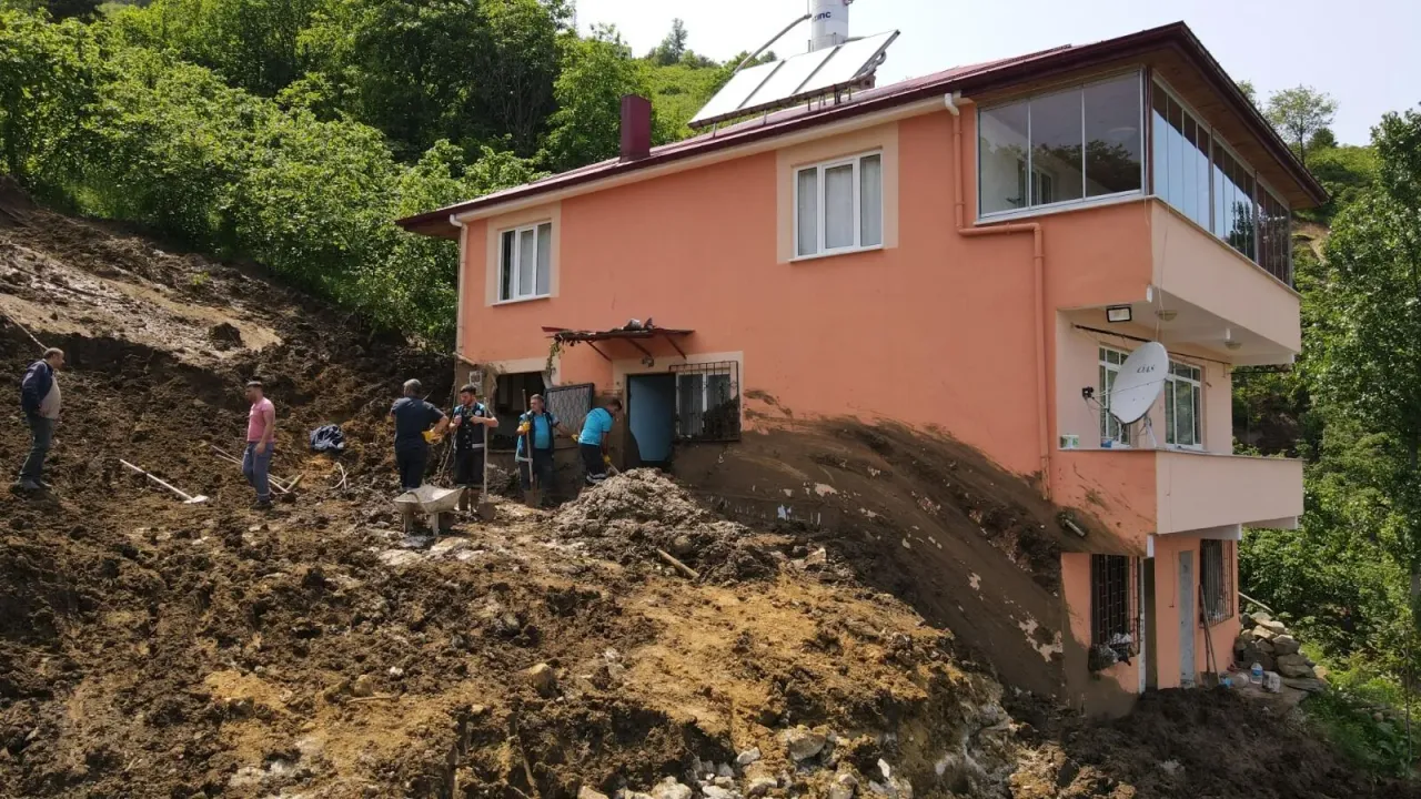 Başkan Yardımcısı Akaç, "Ortahisar merkezli oluşan afetin ikinci gününde, Ağıllı Mahallemizde özellikle şev kopmalarından oluşan ve 4-5 konutu etkileyen bir heyelan meydana geldi. Ekiplerimiz heyelana müdahale ediyor. Kapanan yolu yeniden ulaşıma açtık," dedi.