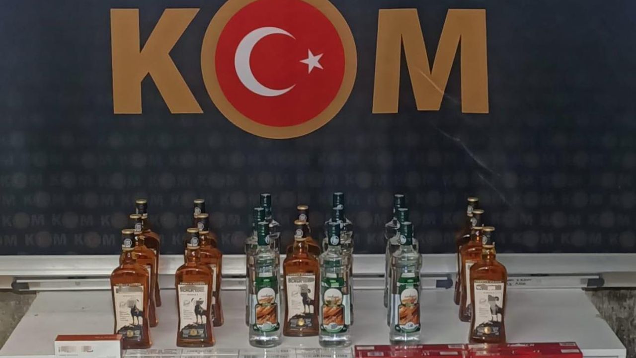 Operasyonda, 20 cam şişe içerisinde 20 litre bandrolsüz kaçak içki, 710 paket kaçak sigara ve 160 paket kaçak ısıtılmış elektronik sigara mamulü ele geçirildi.