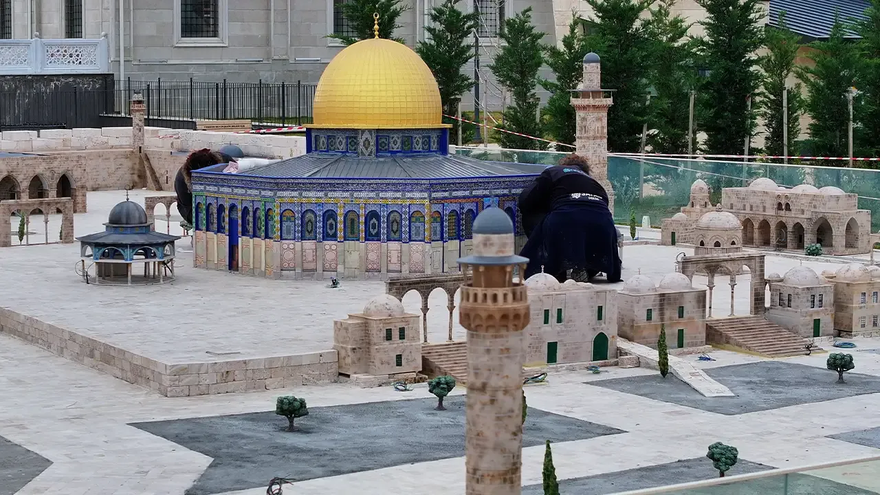 Minyatür çalışma, Hanife Hatun Cami ve Külliyesi’nin yanında yer alan 200 metrekarelik alanda konumlandırıldı. Toplam 70 parçadan oluşan yapıda, Mescid-i Aksa yerleşkesinde bulunan önemli unsurlar sembolik olarak canlandırıldı.