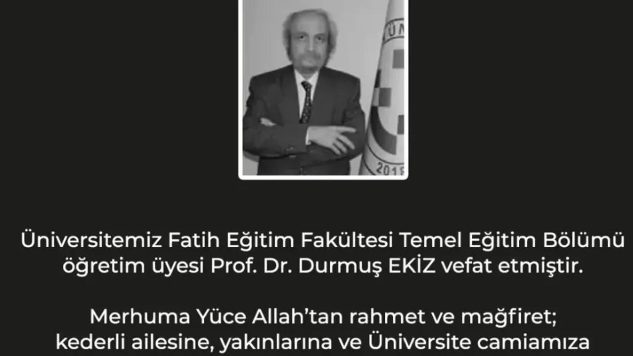 Trabzon Üniversitesi tarafından yapılan açıklamada, Prof. Dr. Durmuş Ekiz için taziye mesajı paylaşıldı. Akademisyenin vefatı, üniversite camiasında büyük üzüntüye neden oldu.