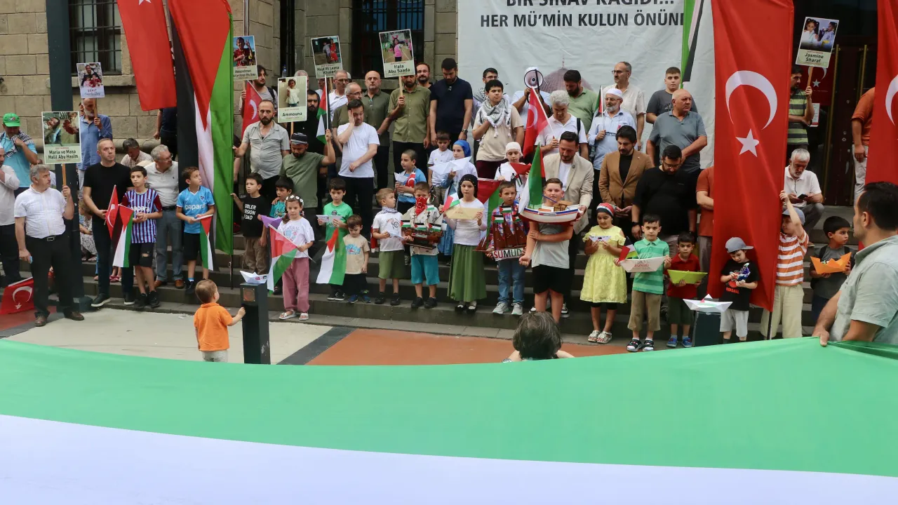 İskenderpaşa Camisi önünde toplanan Özgür Aksa Trabzon Platformu üyeleri, Türk ve Filistin bayraklarıyla Kahramanmaraş Caddesi’ne yürüdü. Grup adına konuşan Miraç Arslantürk, Gazze’ye insani koridor açılması gerektiğini vurguladı.
