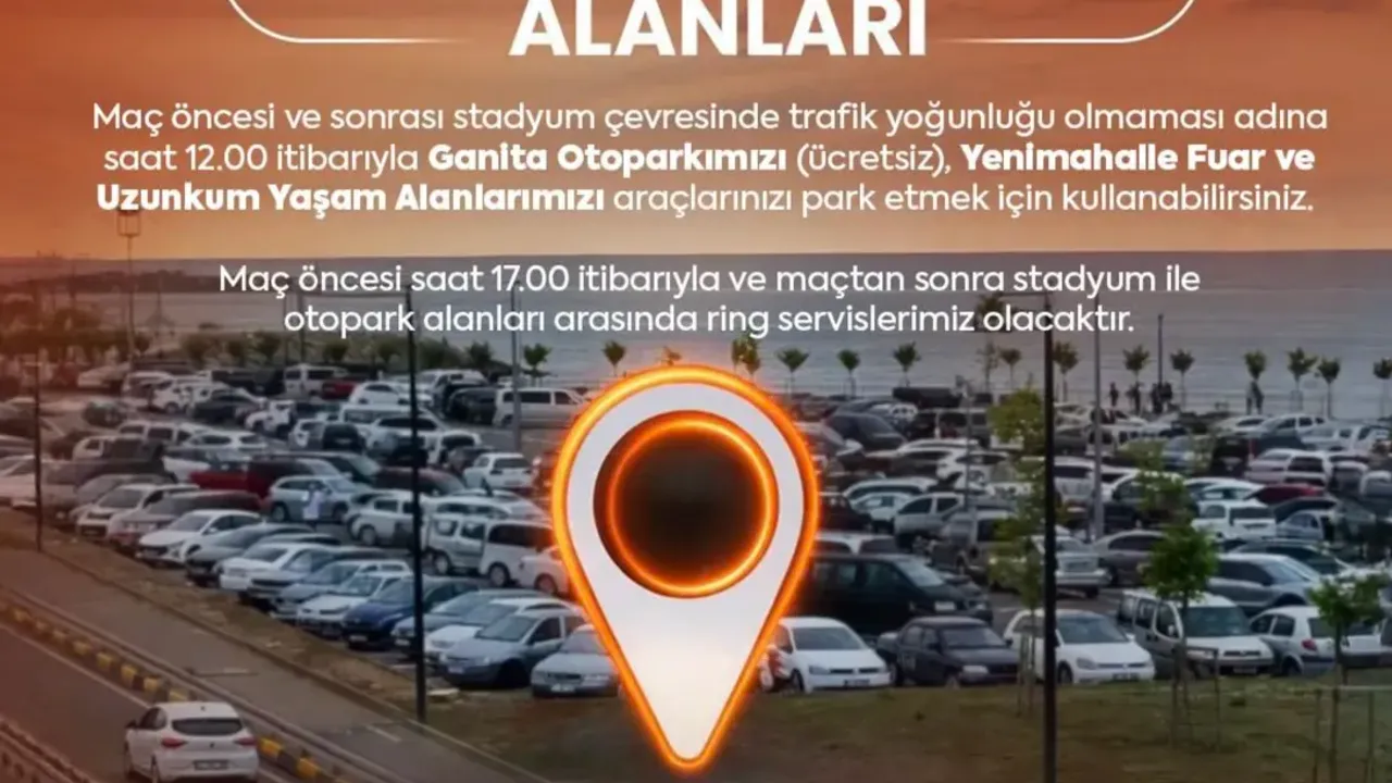 Trabzonspor Fenerbahçe maçı kapsamında yalnızca toplu ulaşım değil, otopark düzenlemesi de yapıldı. Ganita Otoparkı saat 12.00 itibarıyla ücretsiz olarak taraftarların kullanımına açılacak.