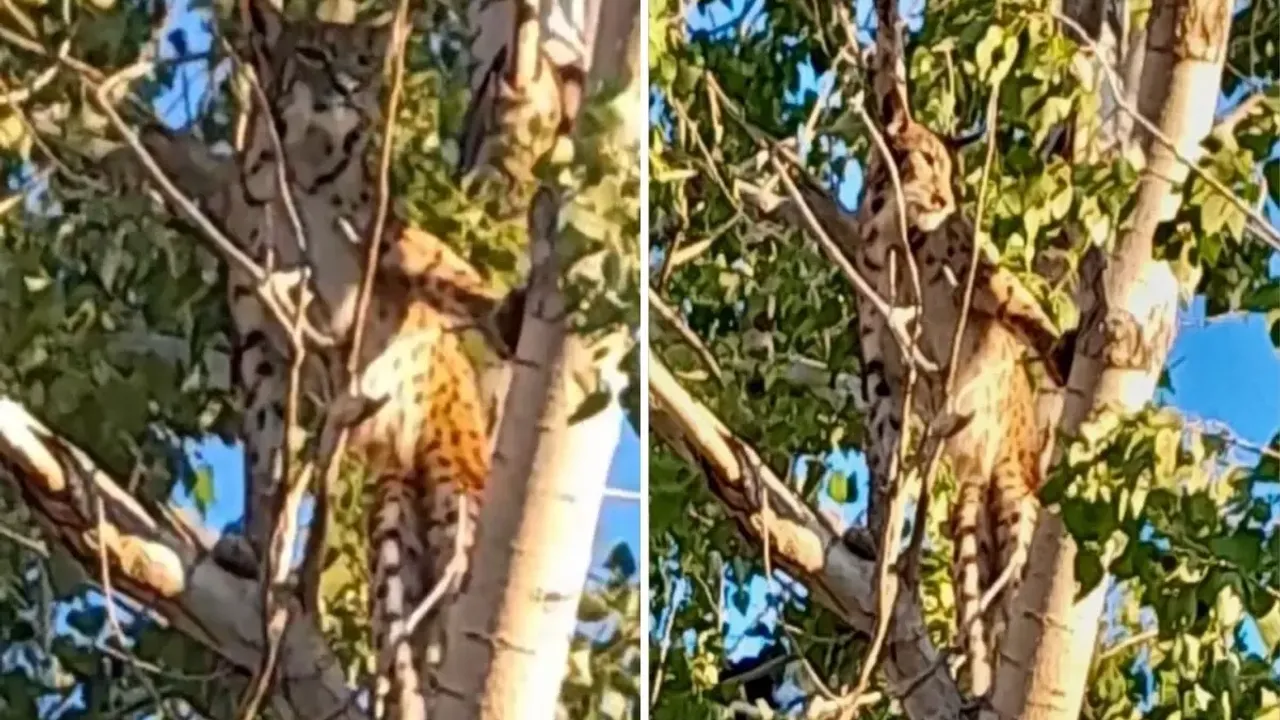 Uzmanlar, görüntüdeki bireyin muhtemelen genç bir pars olduğunu ve insanlardan kaçtığı için ağaca sığındığını belirtti.