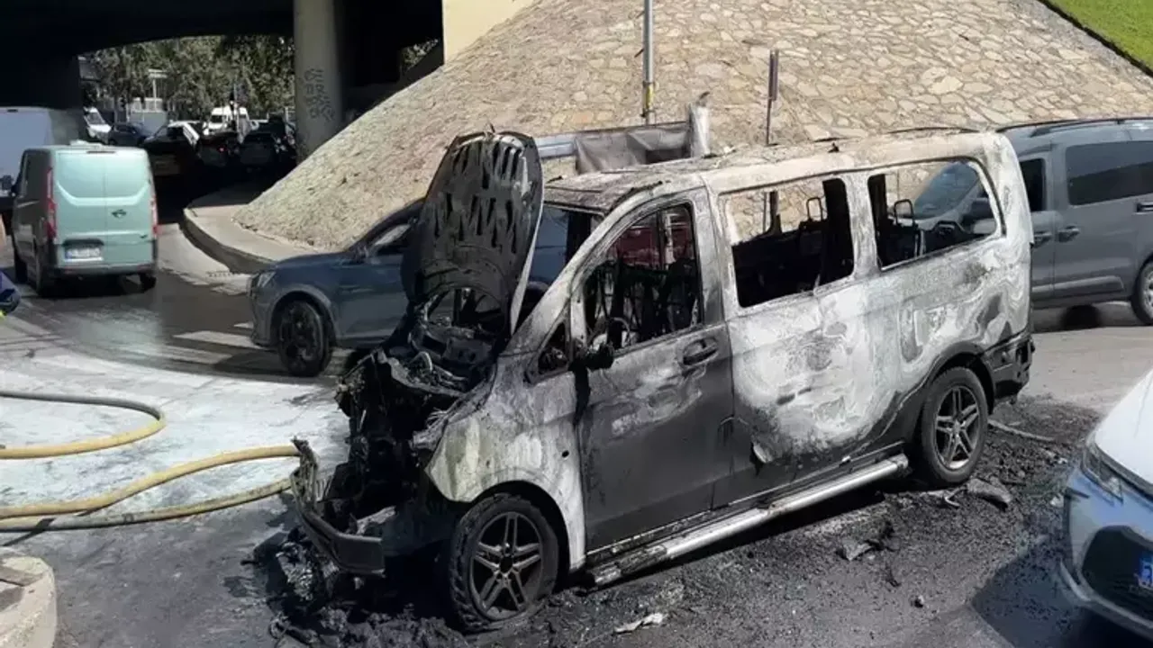 Minibüsün alevler içinde yandığı anlar, çevredeki vatandaşlar tarafından cep telefonuyla görüntülendi. Görüntülerde, alevlerin aracın tamamını sardığı ve yoğun dumanın yükseldiği anlar yer aldı.