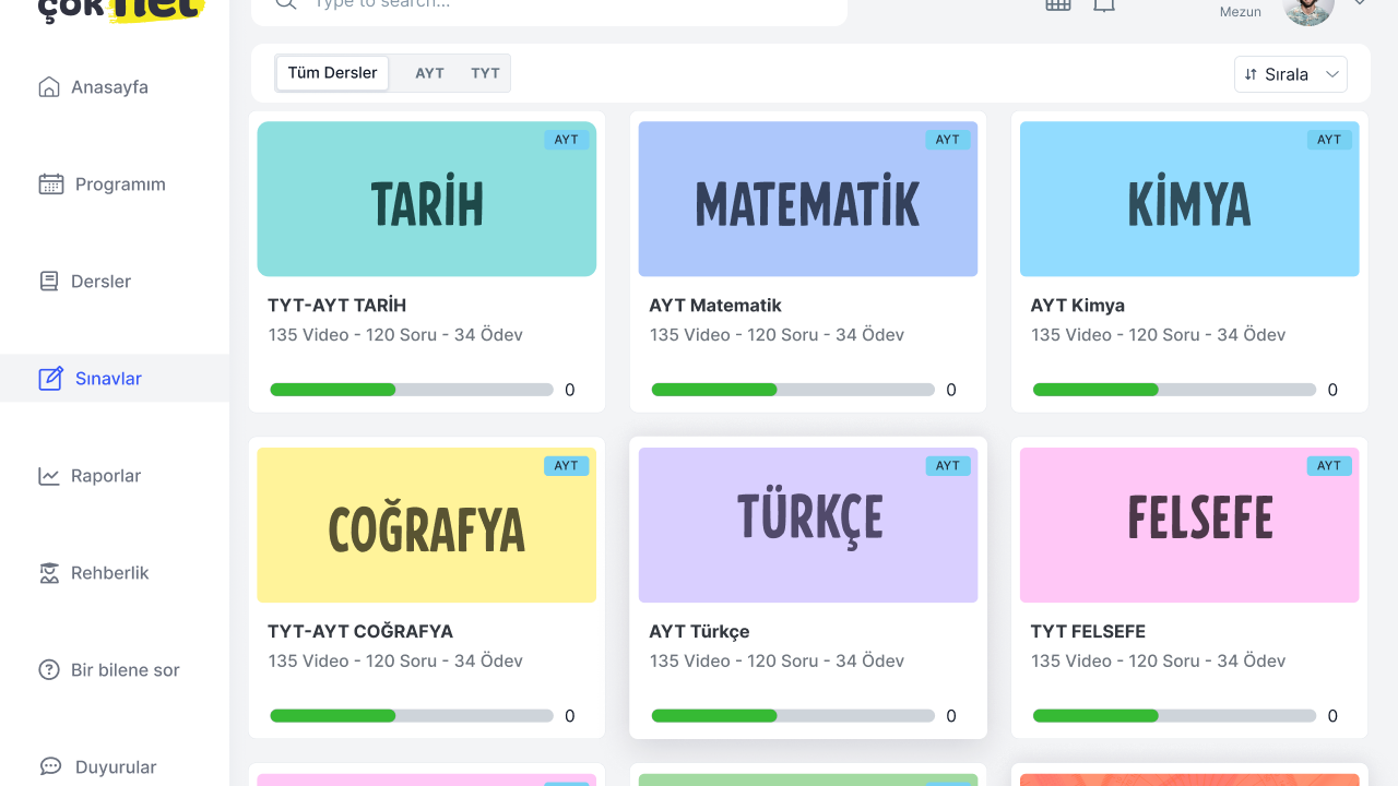 Binlerce öğrencinin tercih ettiği Çok Net, rehberlik ve koçluk sistemini zengin içerik havuzu ve yapay zekâ analizleriyle birleştirerek YKS hazırlığında güçlü bir çözüm sunuyor.