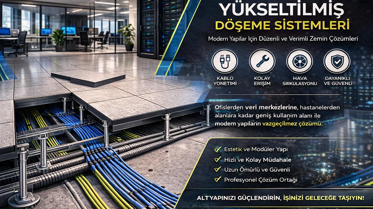 Modern yapılarda altyapının görünmeden, düzenli ve erişilebilir şekilde konumlandırılması oldukça önemlidir. İşte bu noktada yükseltilmiş döşeme sistemleri devreye girerek hem estetik hem de teknik çözümler sunar.