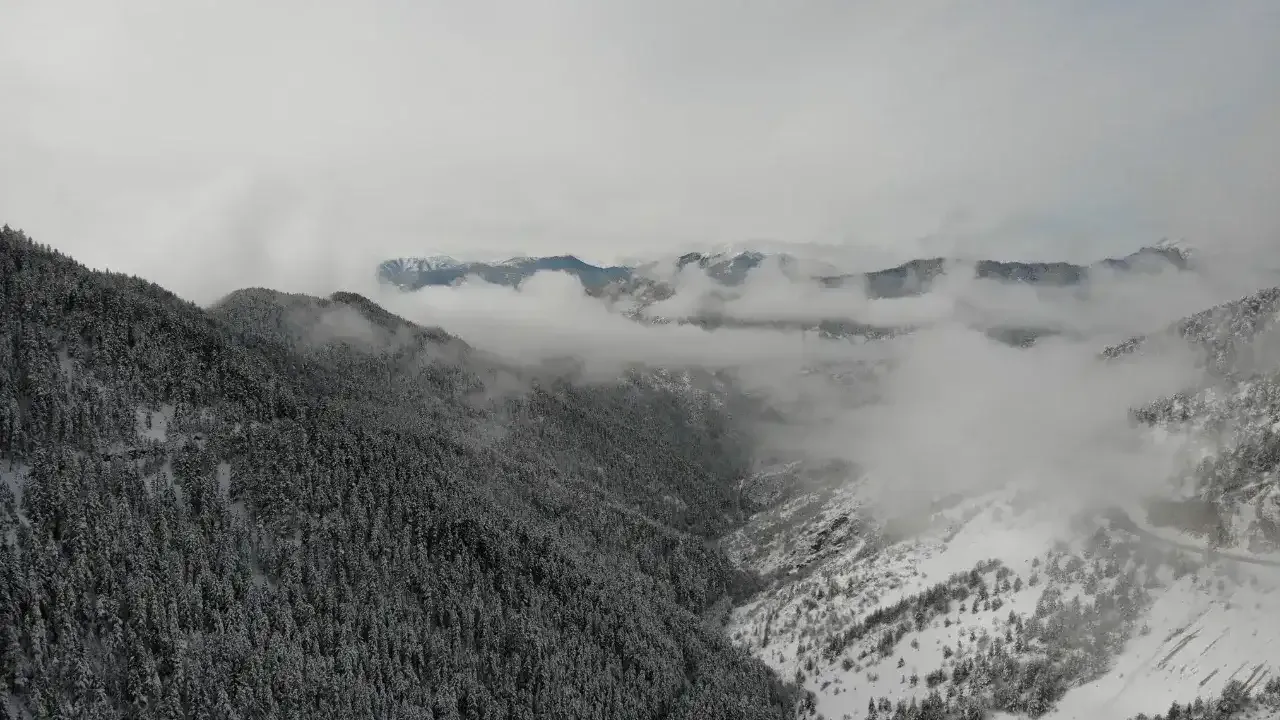 Gümüşhane ile Trabzon sınırında yer alan Zigana Dağı, Mart ayının son günlerinde doğanın iki farklı yüzünü aynı anda sergiliyor. Yüksek kesimlerde kış etkisini sürdürürken, daha alçak bölgelerde baharın canlı renkleri ortaya çıktı.