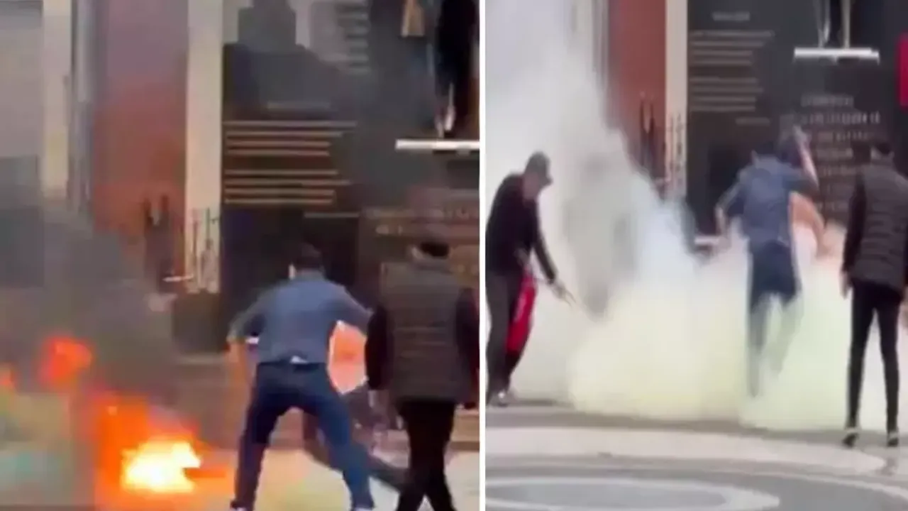 Bir anda alevler içinde kalan adam, acı içinde yardım isterken çevredeki vatandaşlar duruma müdahale etti.